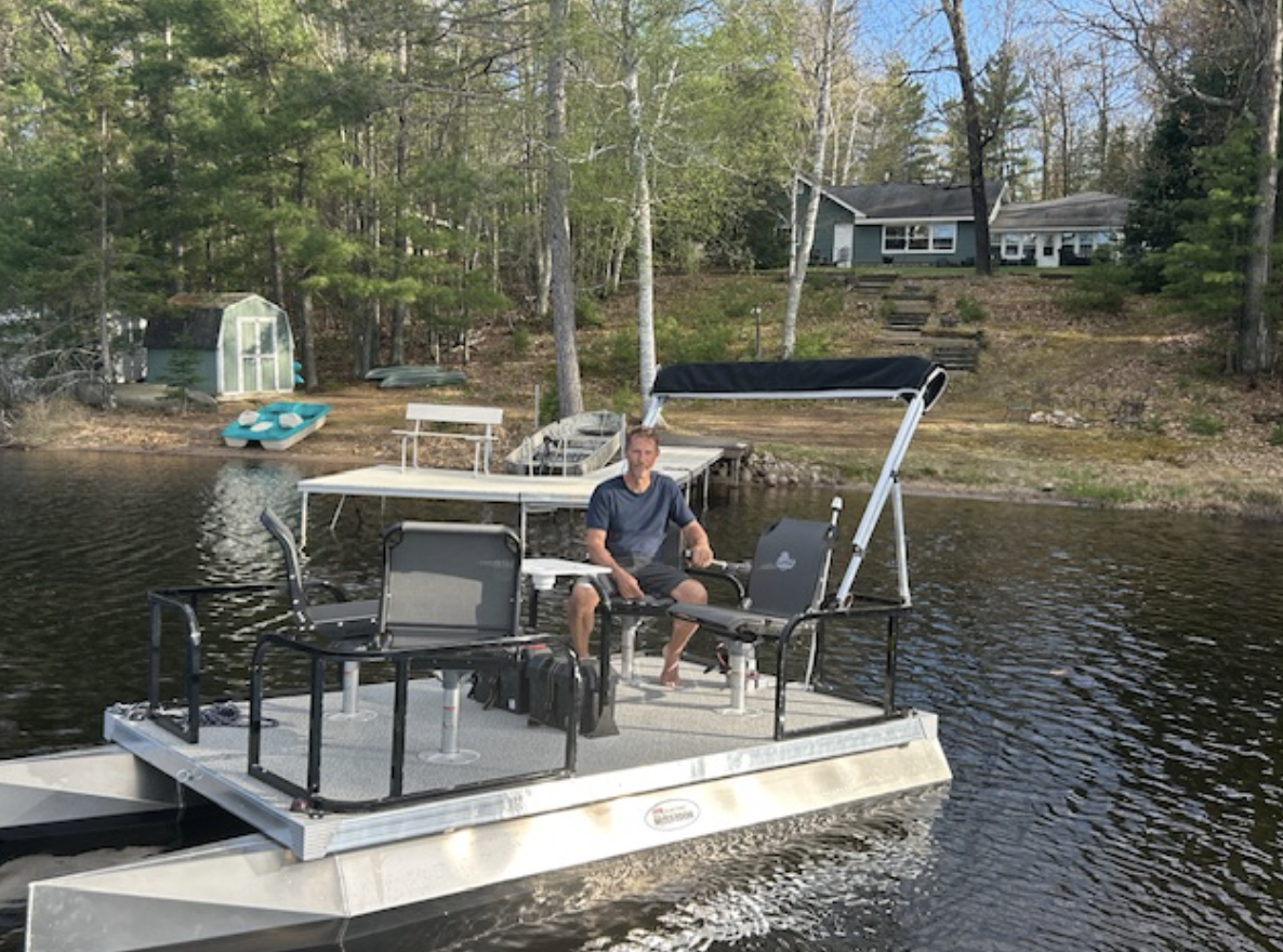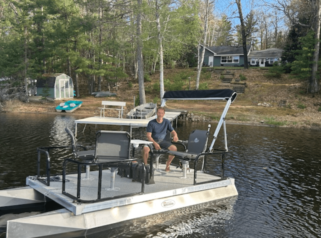 Then there’s Cal’s on the Chain in Eagle River, WI, sitting on the famous Chain of 28 Lakes. This one is built for bigger crews: 5 bedrooms, 3 bathrooms, sleeps 12, and it includes both a main cabin and a finished bunkhouse setup so your group can spread out and still stay together. The signature move here is the boathouse with a rooftop deck—grab your coffee up top, watch the water, and call it a perfect morning. And if your group loves being on the lake, the “all-in” approach is the headline: a deluxe pontoon and other watercraft are included, so you can spend your trip cruising, fishing, paddling, and swimming instead of hunting down rentals.