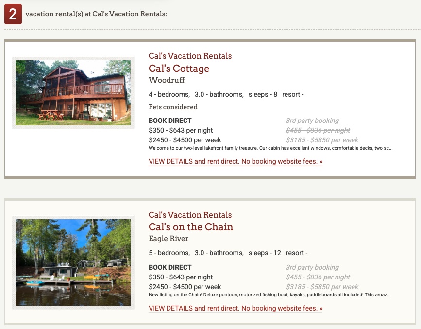 - No Service Fees: Save money compared to big online travel agencies. Your payment goes directly towards your vacation rental.