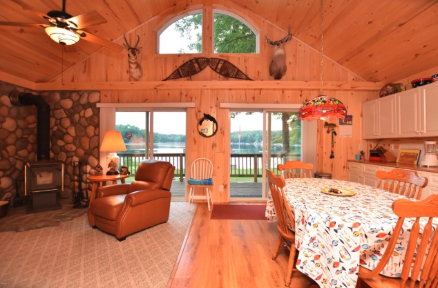 Drive north to classic cabin country and trade big-water vistas for island-like privacy. The Point House sits at the end of a private road with water in three directions—cue the loon calls. It’s the stuff Northwoods memories are made of: knotty pine, a wood-burning fireplace with wood stacked and ready, and living/dining/kitchen spaces that keep the crew connected.