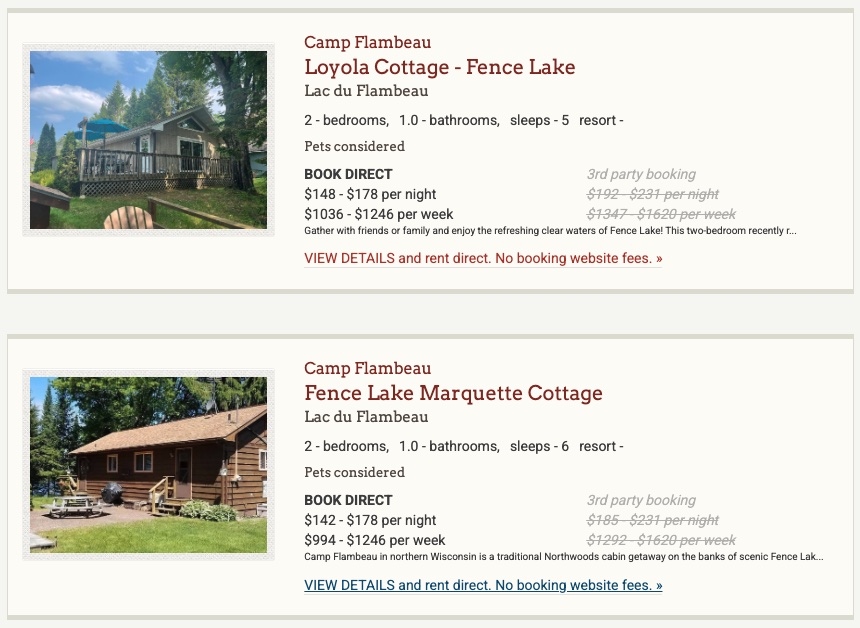 On our Minocqua, WI cabins & resorts page, you can: