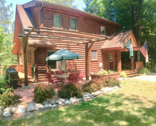 This custom cedar log cabin was built for gathering. Four bedrooms, three full baths, a fun loft, and two living areas mean the whole crew can spread out. Sleep up to 12 without stepping on toes. Pets are considered, so bring the four‑legged explorer, too. Mornings start slow on the big back deck with coffee and river views. Evenings finish around the stone fire pit right on the bank—s’mores, stars, and the Sturgeon flowing by.