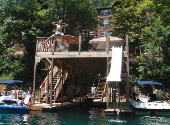 Being directly on Norris Lake means easy access to water activities. The Great Escape features a two-story dock with a covered boat slip, a swim platform, and a slide. Norris Lake is known for its clear, deep water and is one of TVA’s cleanest lakes. The upper deck of the dock is a great spot for adults to relax on lounge chairs and enjoy the view.
