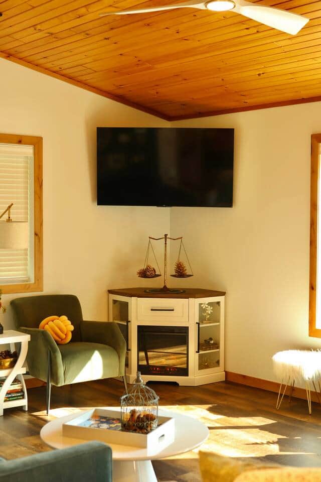 - Room to spread out: The cabin sleeps up to 6 across 2 bedrooms plus a very large loft. There’s 1 full bath with a walk‑in shower, a high‑ceiling great room with knotty‑pine warmth, and a wood‑burning stove for that classic cabin glow.