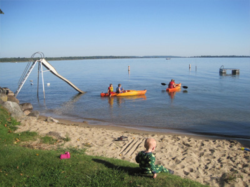 Anderson’s South Shore Resort boasts 29 updated cabins, each equipped with modern amenities. The resort offers a heated pool, a sandy beach, and a protected harbor with boat rentals. Guests can enjoy daily activities such as turtle races, scavenger hunts, and evening bonfires. The on-site lodge serves burger baskets from 11:30 a.m. to 7 p.m., and the full bar is ideal for relaxing evenings.