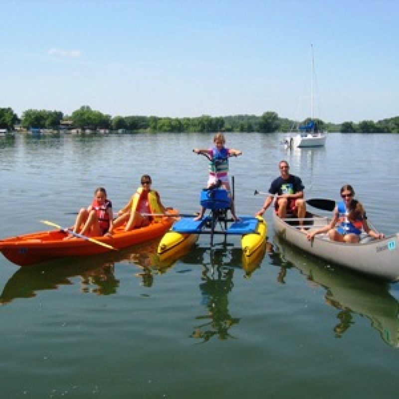 Kids love the jungle gym but the real stars around here are all the water toys such as the floating dock, paddle boats, canoes, kayaks, slide, sand box, tubes, sail boat and more. The level beach is perfect for those a little wobbly on their toes and parents can oversee the action in a chaise lounge chair right on the beach or get in on the action themselves. Kids often fish right off the dock where they can catch plenty of sunnies or crappies. This lodge also has plenty of boat rentals if you want to cruise around the lake or fish for muskies. There is a fish cleaning house located right on the resort!